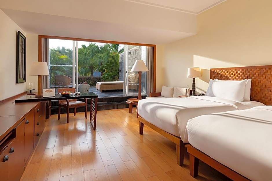 South China Sea Pool Villa is 1615 square feet and includes either a king-size bed 150-183 width or 2 single beds 80-130 width plus desk, satellite tv , bathrobes, and slippers.